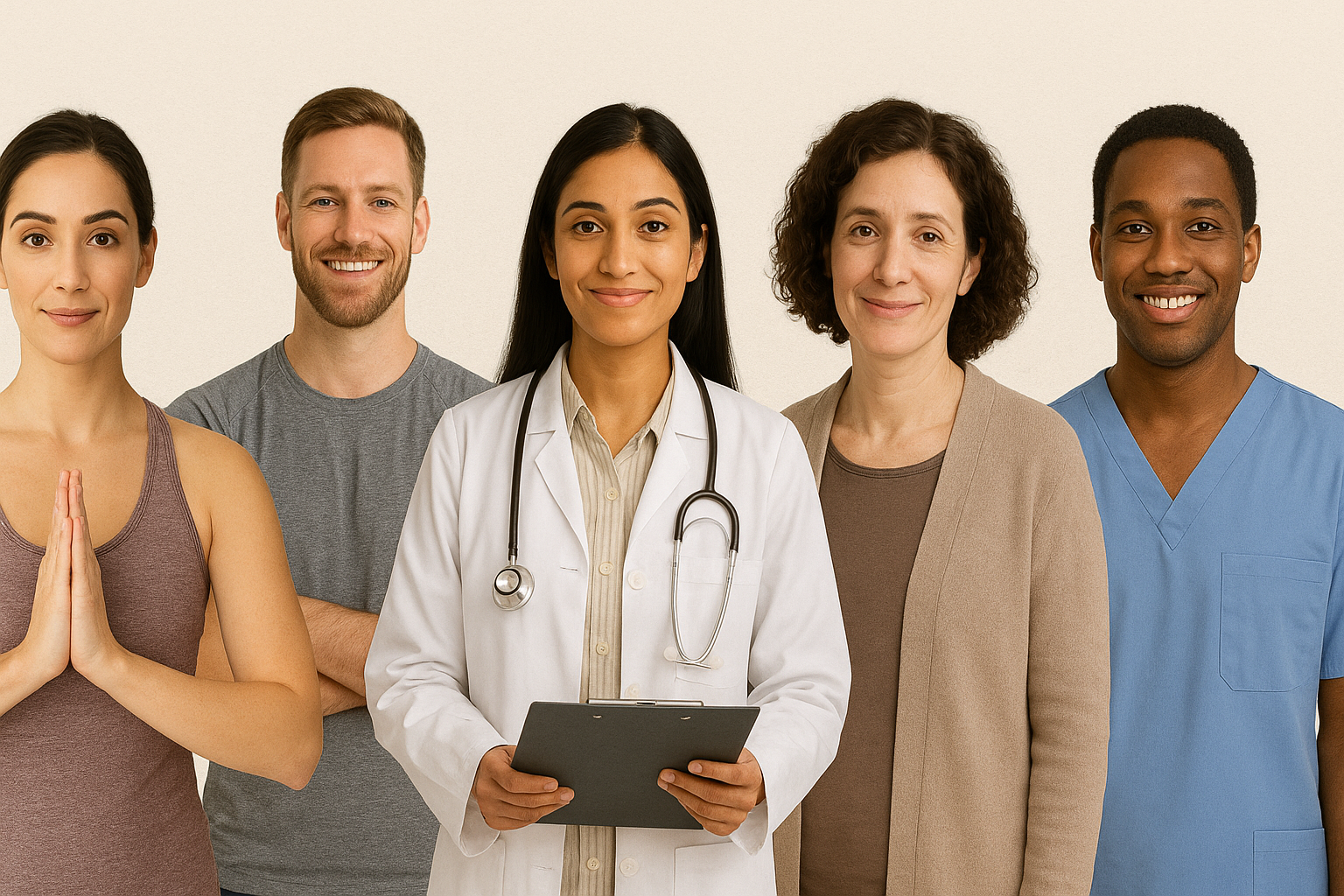 These can include, but are not limited to: Yoga, Meditation and Mindfulness Teachers, Life/ Mindset Coaches, Breathwork Facilitators, Reiki/ Sound Healers, Ayurvedic Practitioners, Yoga Studio Owners or Managers, Pilates Instructors, Barre/Dance Instructors, Fitness Trainers, Group Fitness Coaches, Somatic Practitioners, Massage/Physical Therapists, Chiropractors, Acupuncturists, Naturopathic Doctors, Occupational Therapists, Athletic Trainers, Rehabilitation Specialists, Holistic Health Coaches, Psychologists/ Psychotherapists, Counselors, Social Workers, Trauma-Informed Facilitators, Nurses, Physicians, Hospice Professionals, Caregivers, and Doulas.